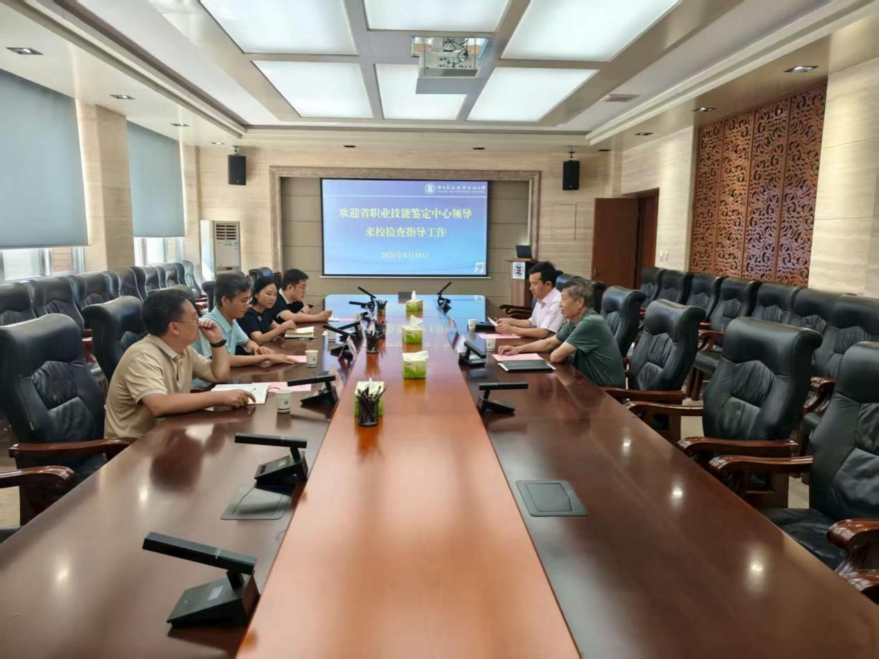 8 月18 日上午,省人力资源和社会保障厅省职业技能鉴定指导中心主任孟庆明、高级经济师邓小峰一行来校检查指导第三届全国职业技能大赛训练基地和参赛选手备赛情况。杨凌示范区人力资源和社会保障局副局长张世卿、主任霍一,我校副校长祝战斌,教务处、二级学院相关负责人等陪同检查并座谈。
